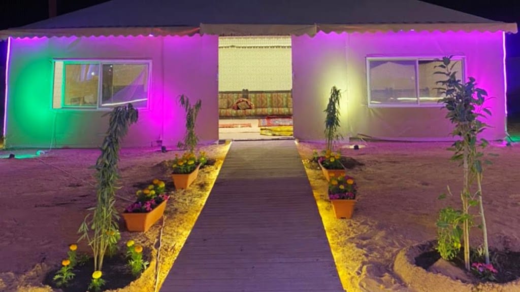 Winter Camp offers a welcoming, tidy escape just off the main road in Riyadh, only minutes from the airport. This family-friendly camp is neatly divided into men’s and women’s sections, each with kitchens, heating options, showers, TVs and romantic lighting that create a comfortable atmosphere. Guests appreciate the thoughtful owner, wooden walkways between tents, and child-friendly touches like swings—ideal for groups looking for a relaxed, well-equipped desert stay.